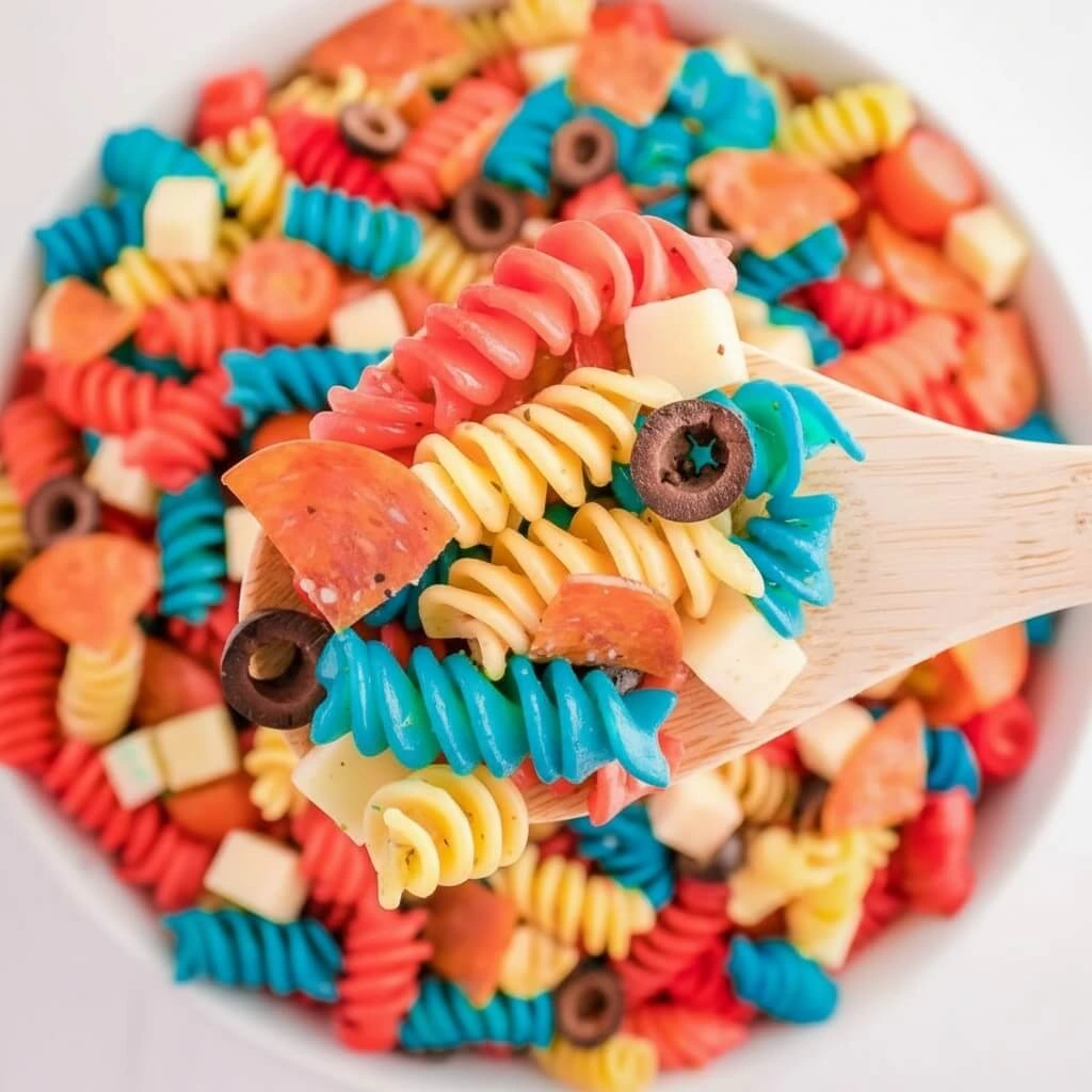 Kid-Approved: Children are naturally drawn to the bright red and blue noodles! Plus, the familiar flavors of pepperoni and mozzarella mimic a “pizza pasta,” making it a hit with picky eaters.